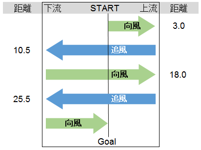 風向きは、嬉しくはないが予想的中で、こんな感じだ。イーブンではなく、向かい風で無理せず、追い風でペースアップする戦略。