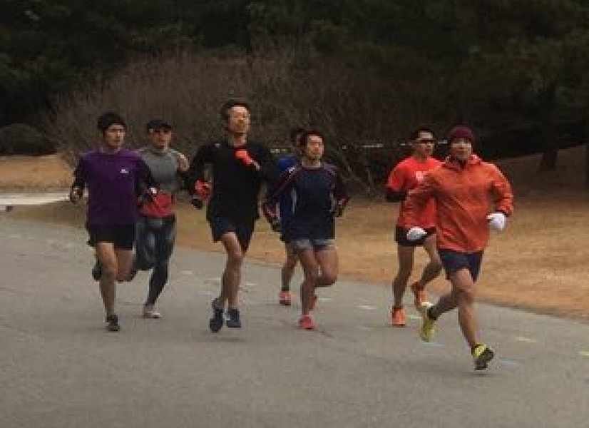 キロヨン隊は7人。フジヤマさん、はじめましての「船橋中年ランナーF」さん、うっちーさん、ゆうたろうさん(途中から単独走)、Ukeさん(ハーフまで)、motoさん(途中から単独走)