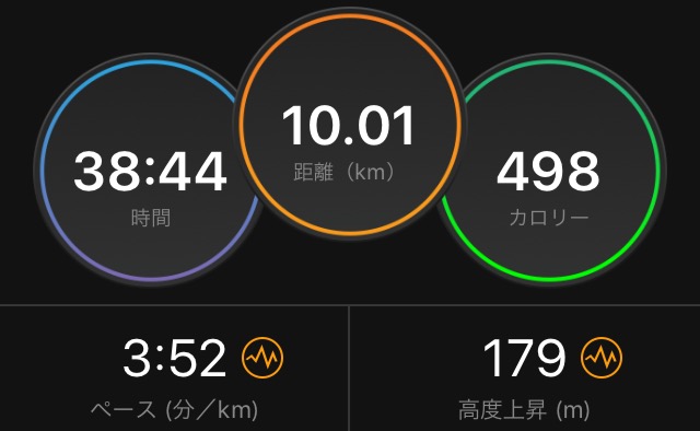 帰省中、一度だけ走った。10km、1時間、激沈ブラックで。