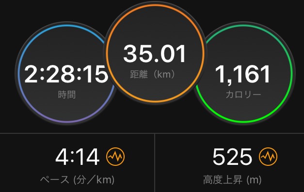 その後、4'20~30のペースをなんとか維持しながら、35km完走。
