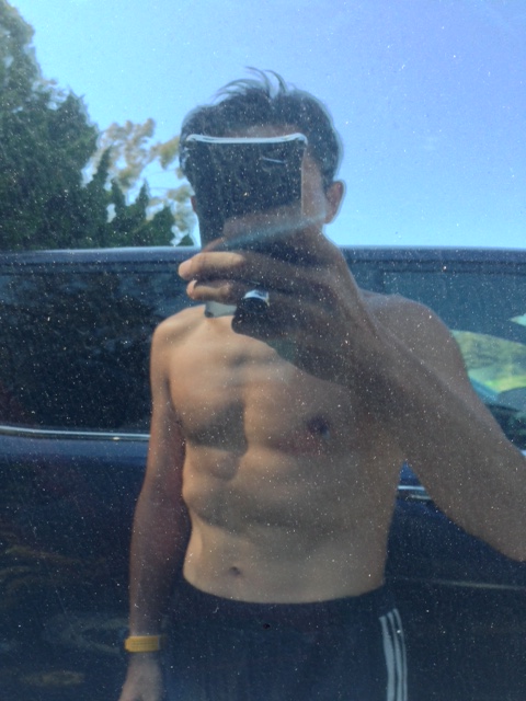 季節外れの上半身ハダカ(笑)。シューズはjapan boost 3。