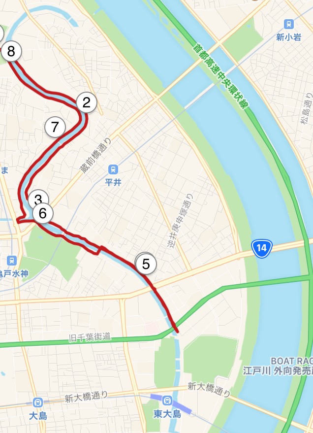 ガーミンでコースを確認すると、小松川公園の手前まで来てきた。日曜は荒川河川敷を走ってその公園を通過したけど、こうして地点と地点がつながっていくのは面白い。