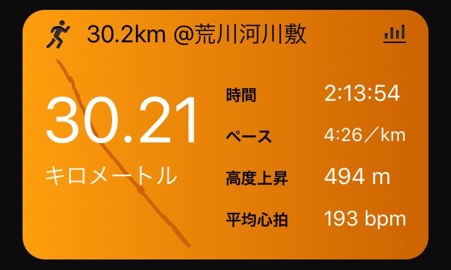 僕の30km走は予定通りEペース上限の4'26で無事に消化。不必要に体力を消耗したくなかったので、一定ペースではなく風向きに応じてスピード調整。疲労はほとんどなし。