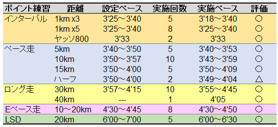 我ながら分かりやすいチャートだと思うのでemoji、詳細な説明は省くとして、練習テーマをはっきりさせ、走る距離が偏らないようにバランスを意識した。