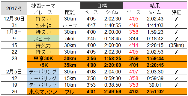 昨日、東京マラソンに向けたトレーニングの内容を振り返った。