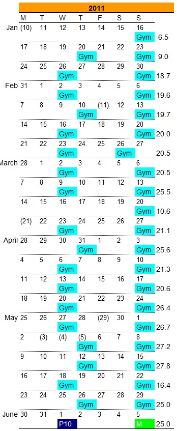 東日本大震災があった翌週を除けば、きっちり週2回ペース。娘が生まれ、初めての子育てに奮闘しつつ、トレミで走った。