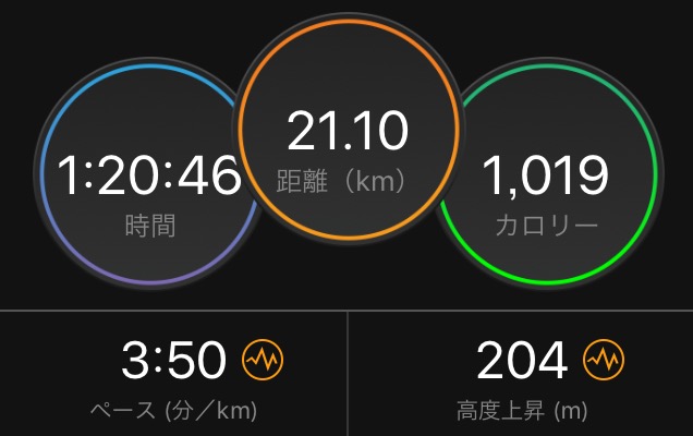 つくば前からの好調ウェーブが持続している。ハーフのレースでは、平均心拍が175前後になっているが、今回は161。