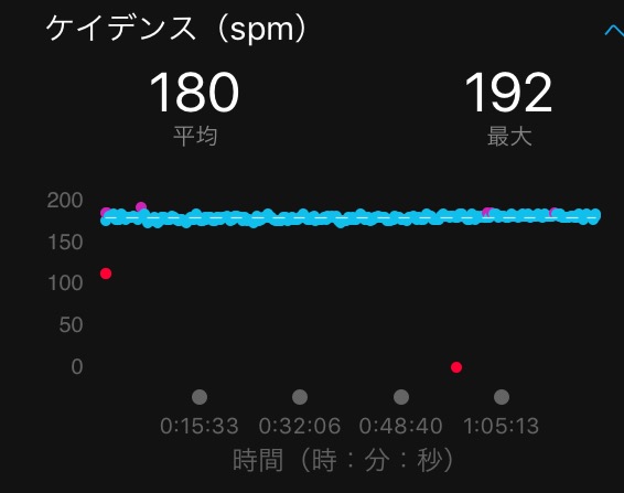 ピッチ数は僕の中でベストの180。ストライドは1.45m。