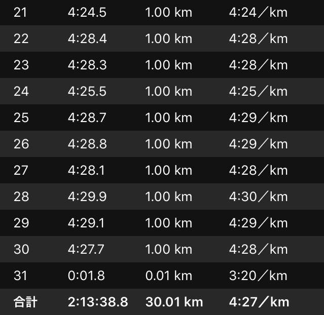 2時間13分39秒。向風では肌寒いぐらいだったので、無給水。