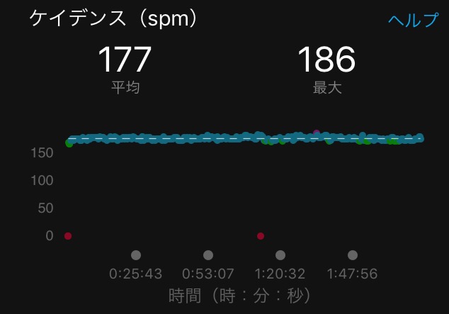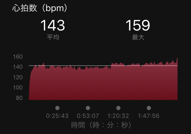 脚は重かった。やっぱりふくらはぎが直ぐに張ってしまう。それでも、心拍数は過去データと比較すると良い結果。