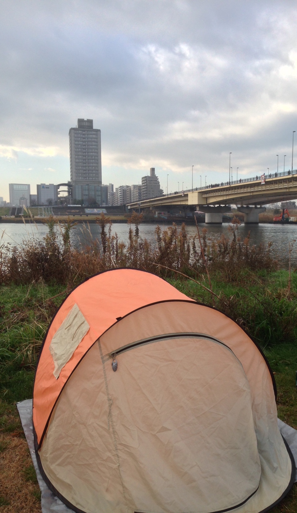 8時前に出発。アフターに参加すべく、今回は初めて電車で。小菅駅で降りて、現地到着が9時前。雨で地面が濡れていると思い、テントはLOGOSではなく、これで。