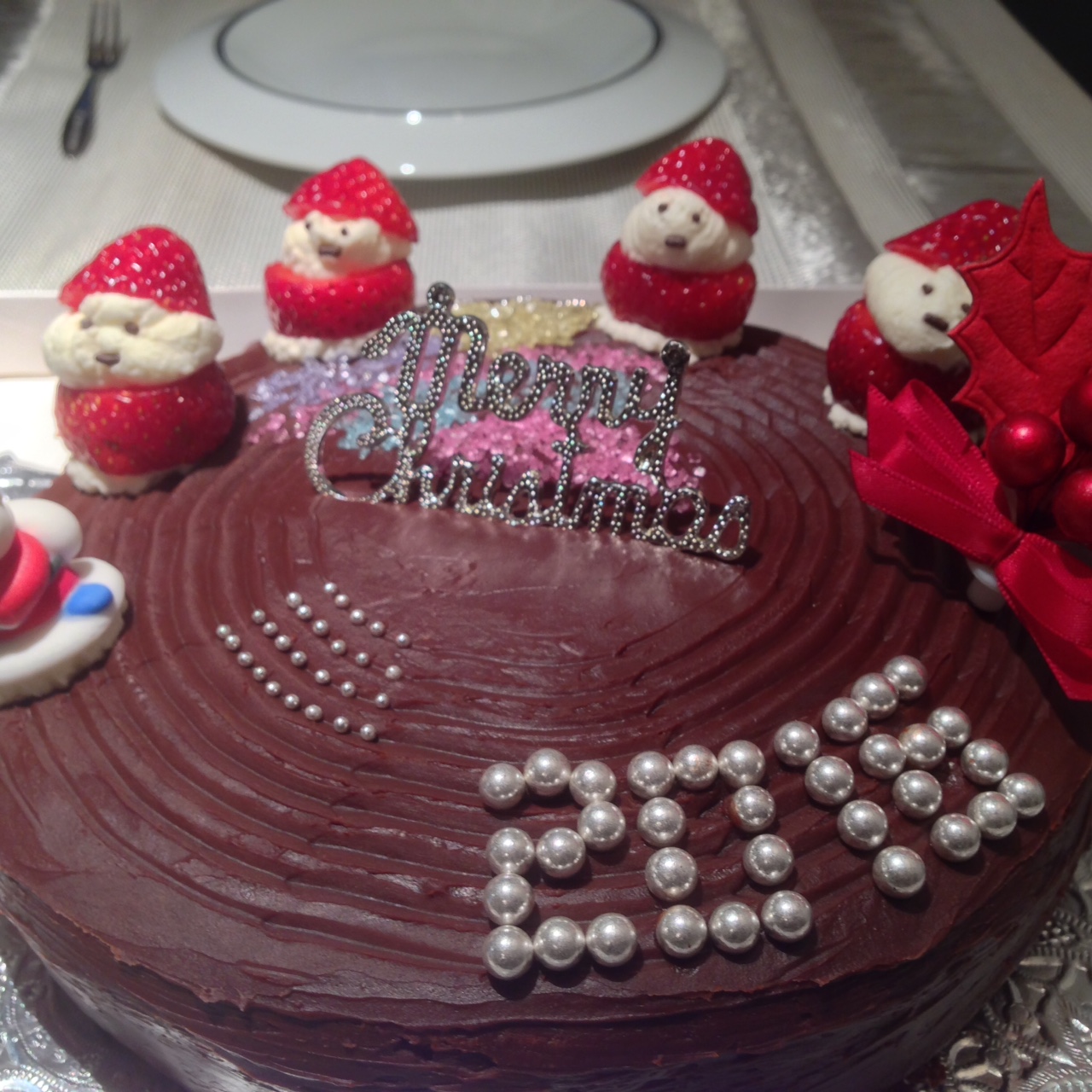 そして、マラソンよりも時間がかかるemojiクリスマスケーキ2016。チョコが好きな娘のために、ガナッシュクリームで。