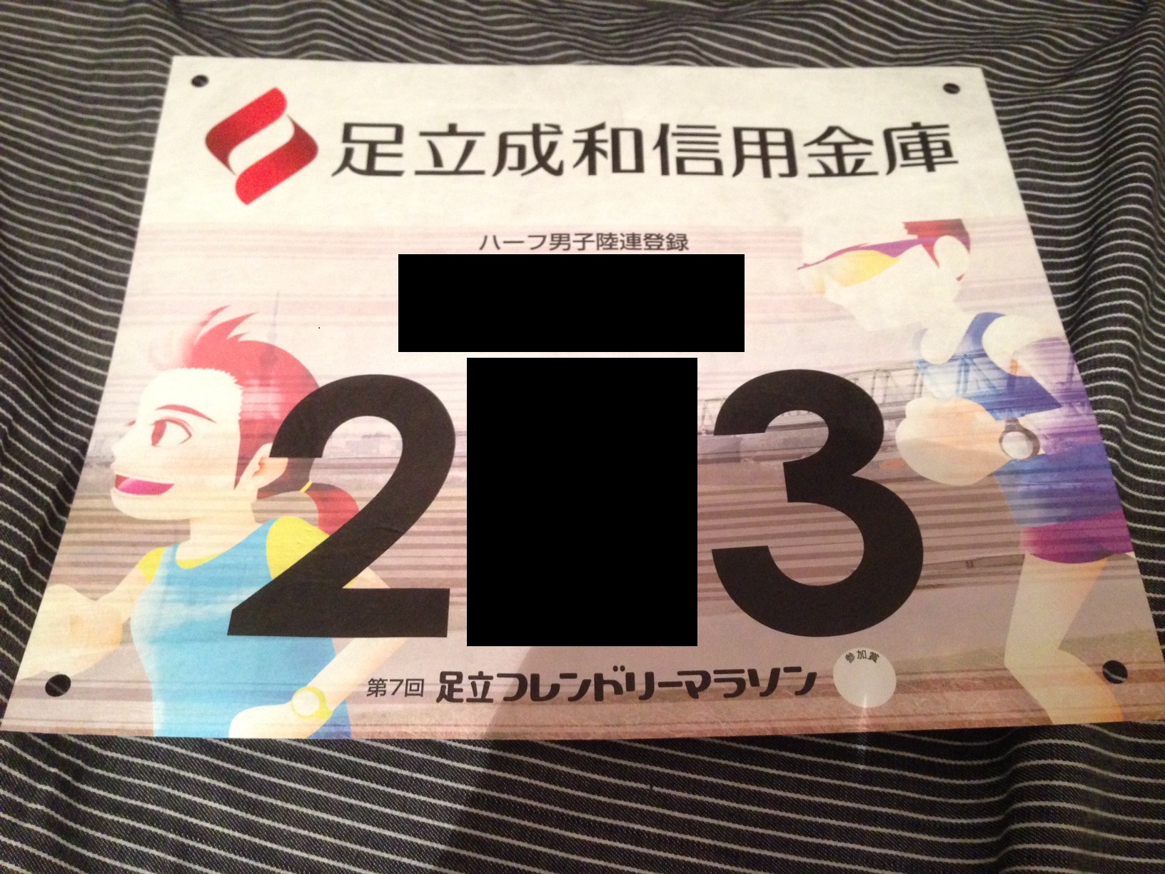12/23に行われる足立フレンドリーマラソン(ハーフ)のゼッケンが届いた。