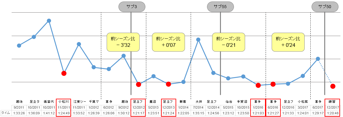 足立フレンドリーの前に、ハーフの記録を振り返ってみた