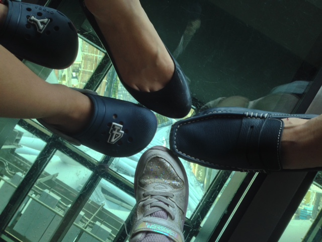 で、記念写真あるある(笑)。地上340mにて。恐らく、最高地点のシューズ集合写真じゃないだろうかemoji