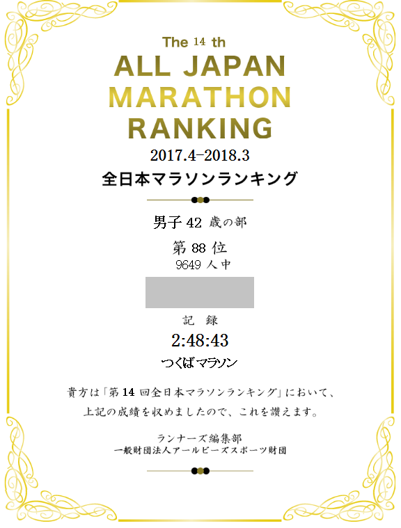 【歓喜】 全日本マラソンランキング トップ100入り!!