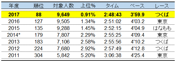 (注:2014は横浜マラソンが非公認のため、2:54:09は対象外)