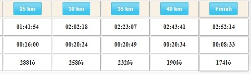 31~40kmで若干ペースは落ちたものの、順位では20km以降どんどん良くなっている。 40kmも走ってきて、ラスト2.195kmをなんと3'54/kmで走ったことが驚きだ。