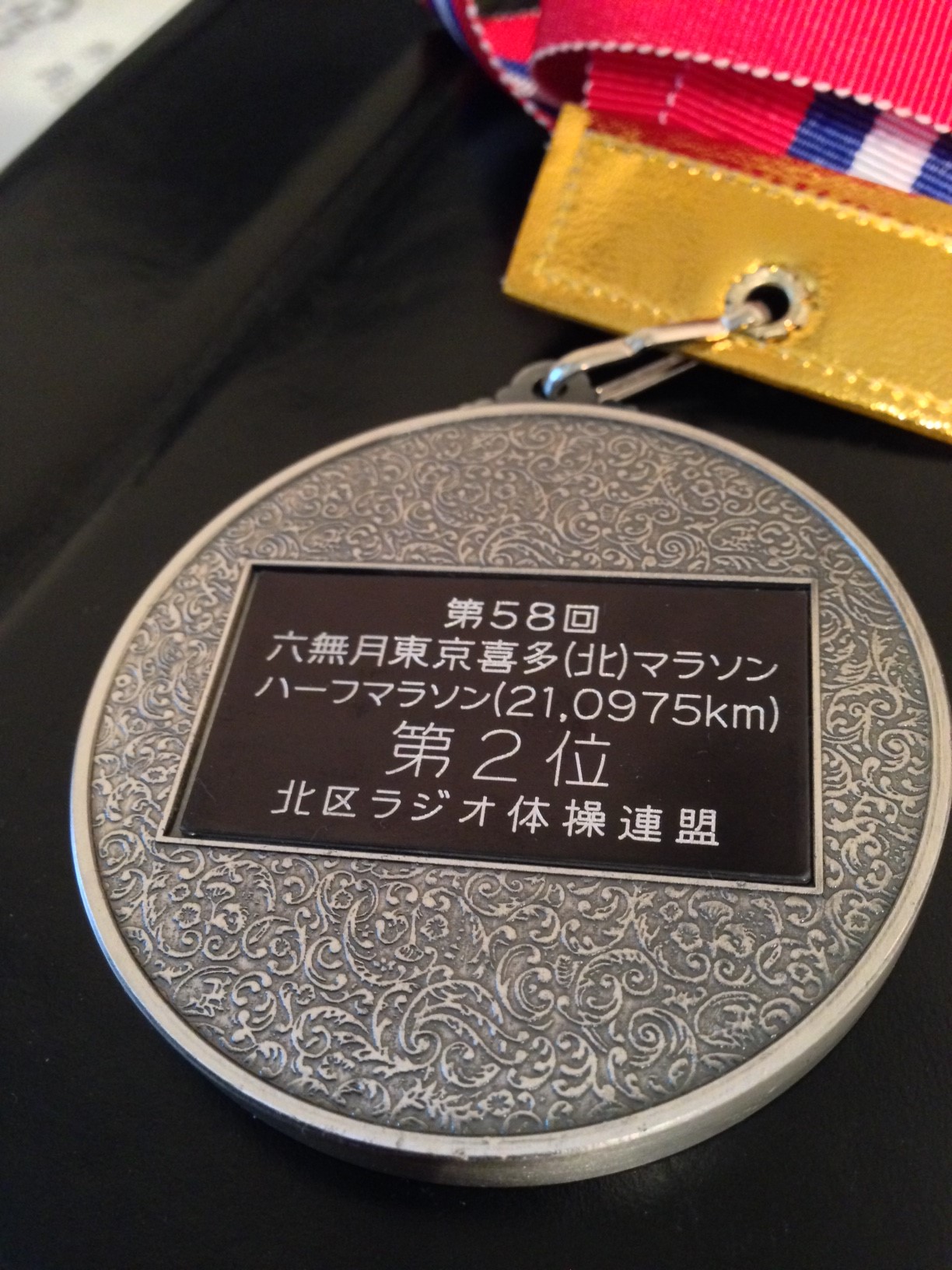 3位のランナーはゴール直前で抜いて1秒差で銅メダルを勝ち取ったとのこと。走歴1年半で、ハーフは2回目らしく、当面はサブフォーが目標らしい。いやいや、サブスリーも十分に可能だと思う。