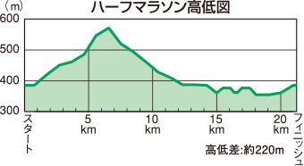 僕が初めて走ったハーフの大会emoji。2011年のことだ。9月末とはいえ気温が高く、コース高低図もこんな感じでエグイemoji