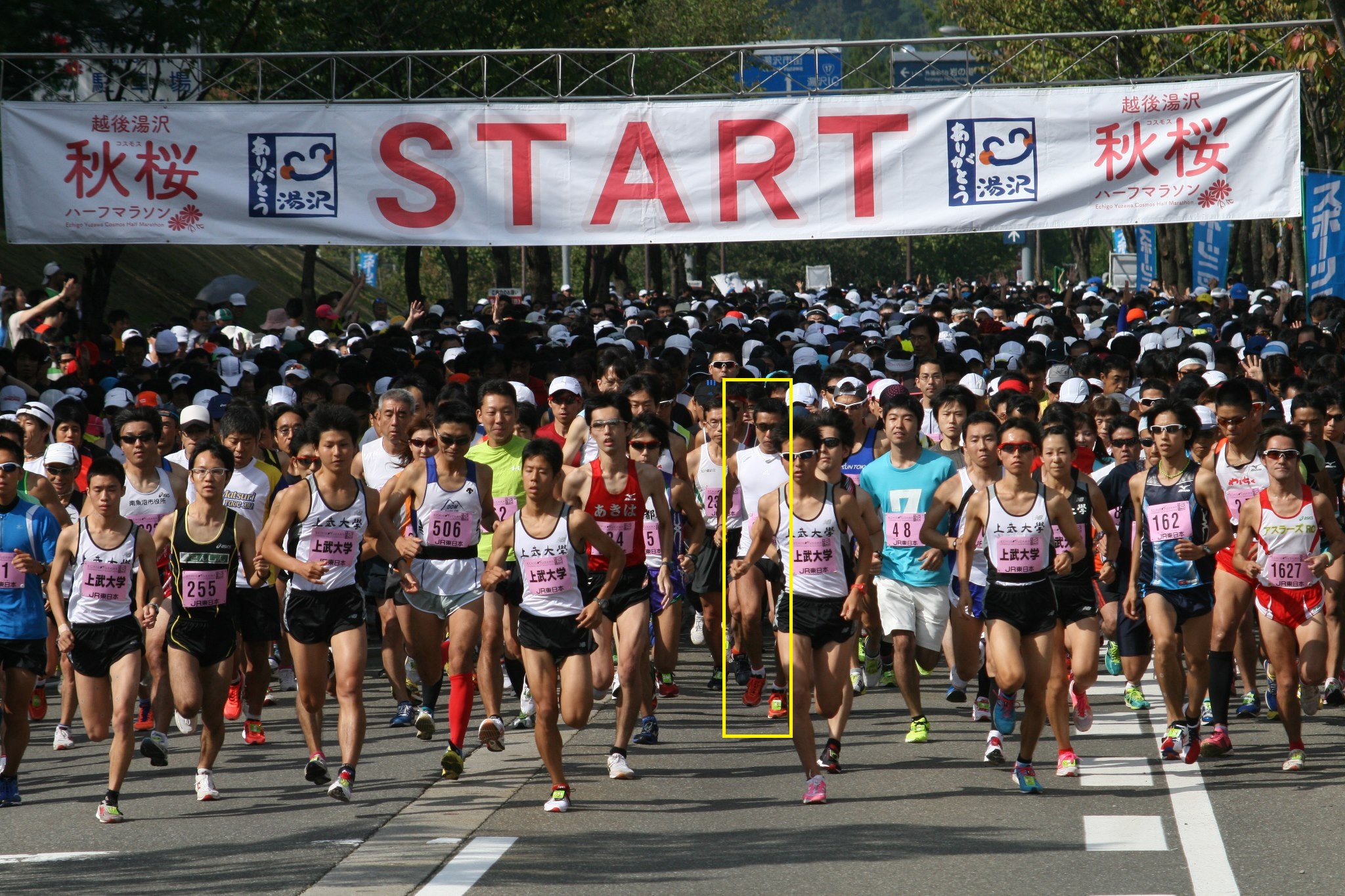 大会HPのスタート時の写真にちゃっかり写っていた。この時は上武大学の駅伝部がゲストランナー。
