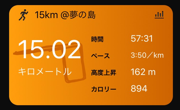 東京マラソンに向けたポイント練習。先週は東京30Kだったので、距離を落としてスピード持久力の強化。設定どおり3'50でクリアemoji