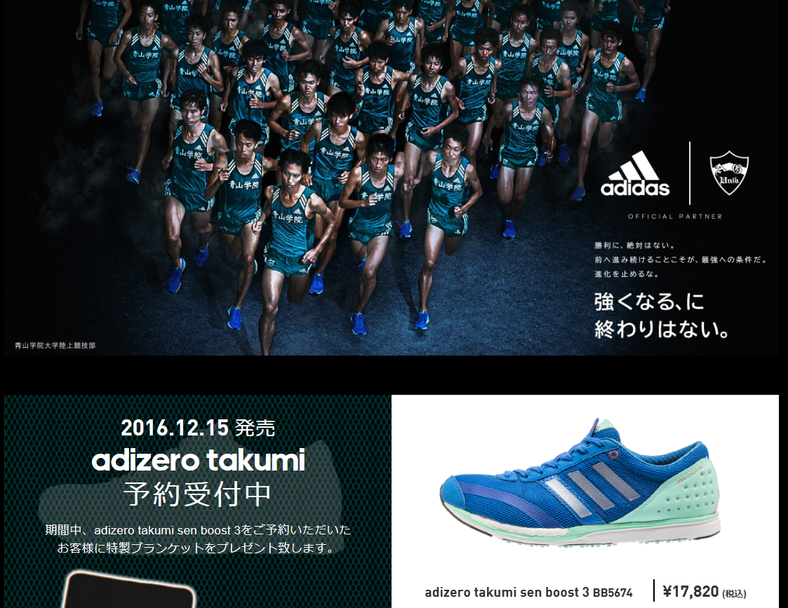今季駅伝2勝、箱根も制しそうな勢いの青学とのタイアップ。これ以上ない宣伝効果だな~。