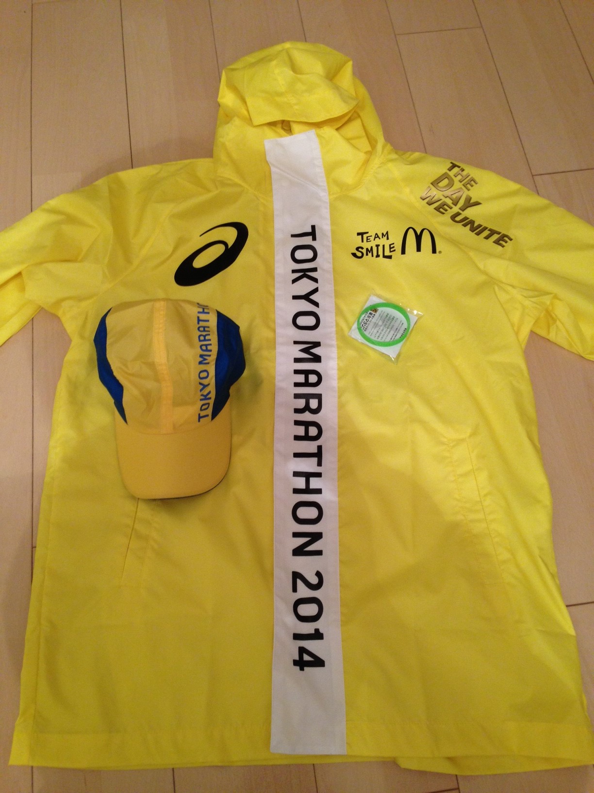 ② 続いて、EXPO開催期間中に、ビッグサイトにてウェアとキャップの受け取り。ボランティア用の荷物置き場なんてないので、基本的にはリュックに荷物を入れ、その上から着られるように、このウェアは大きめに作られている。