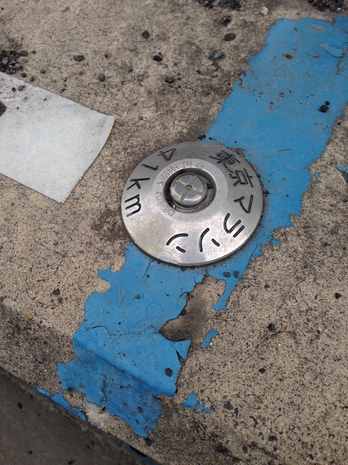 ④ そして当日。この日はほんの一瞬だが雪が舞うほど寒かったので、重ね着に重ね着。うろ覚えだが、9:00前には集合だったと思う。役割分担の確認などをした後、交通規制が開始されると同時に、カラーコーンを並べたりしてコース整備。距離表示版を組み立て、41km地点で待機。ご覧のとおり、表示板はかなり大きくプラスチック製なので、風が吹くと支えるのが大変。ガードレールに括り付けるわけでもないので、足で板を踏んで手で持つことになる。そう、地味だけど、実は重労働なので、自分含め3人で交代することに。そして、ひたすら待つ。