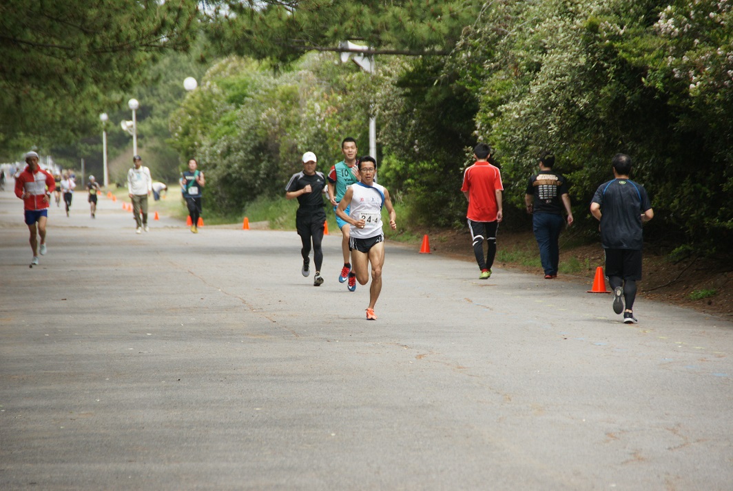 激沈上等チームのじーこさんを追いかける船橋Fさんが後ろに迫っている。周回遅れを避けようと仲間が並走し、ボスのキミ兄さんが迎えるシーン。この背中も好きだな。