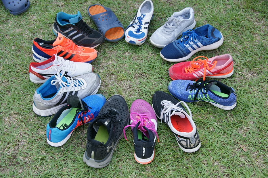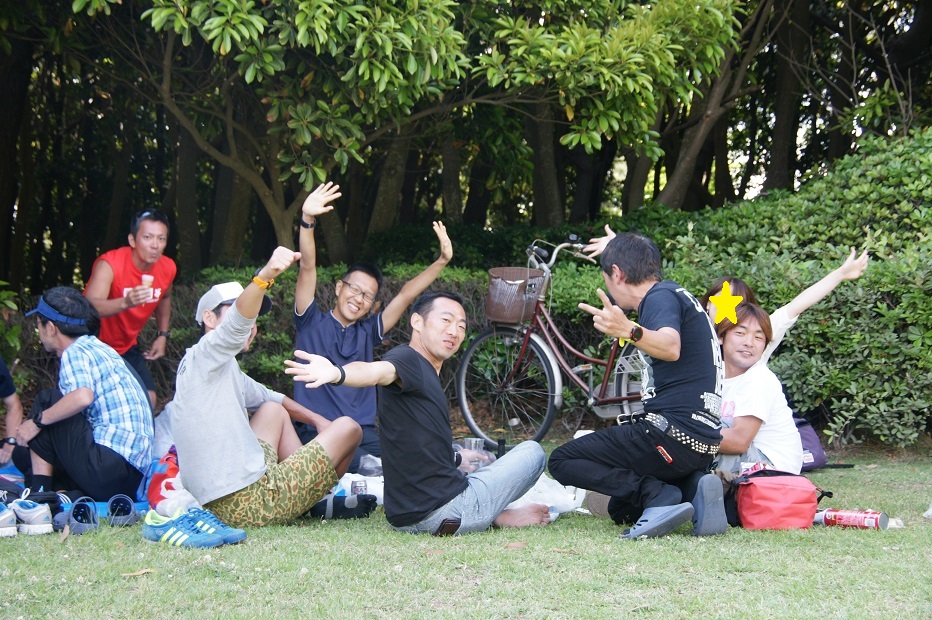 本来はスタート前に恒例のシューズ写真だけど、今日はなぜかみんな忘れてて、青空宴会中にパシャemoji