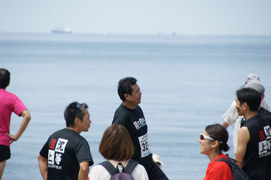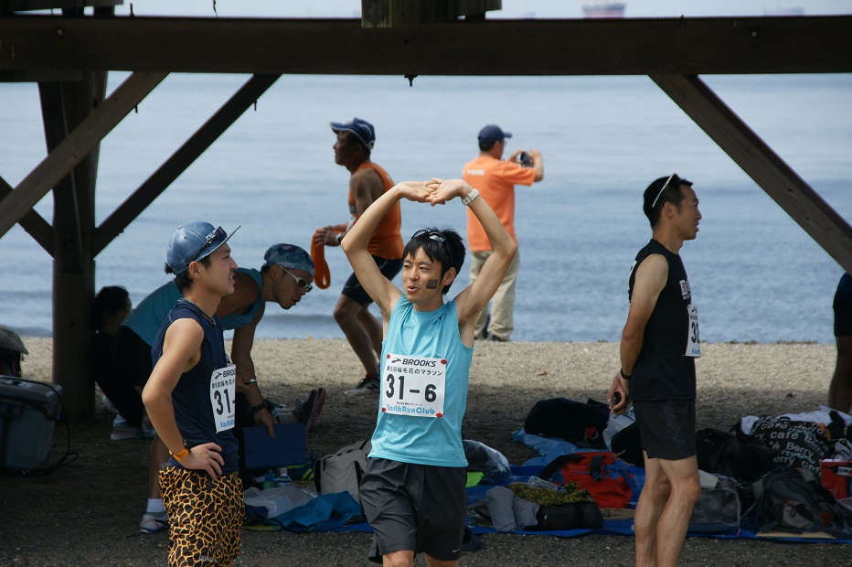 こちらもレース前の和やかな場面。狙ったわけじゃないけど、海を眺めて佇む雑記たけしさんの後ろ姿が、なんとも味がある。偶然にも、キミ兄さんもこの写真を気に入ってくださったようだ。