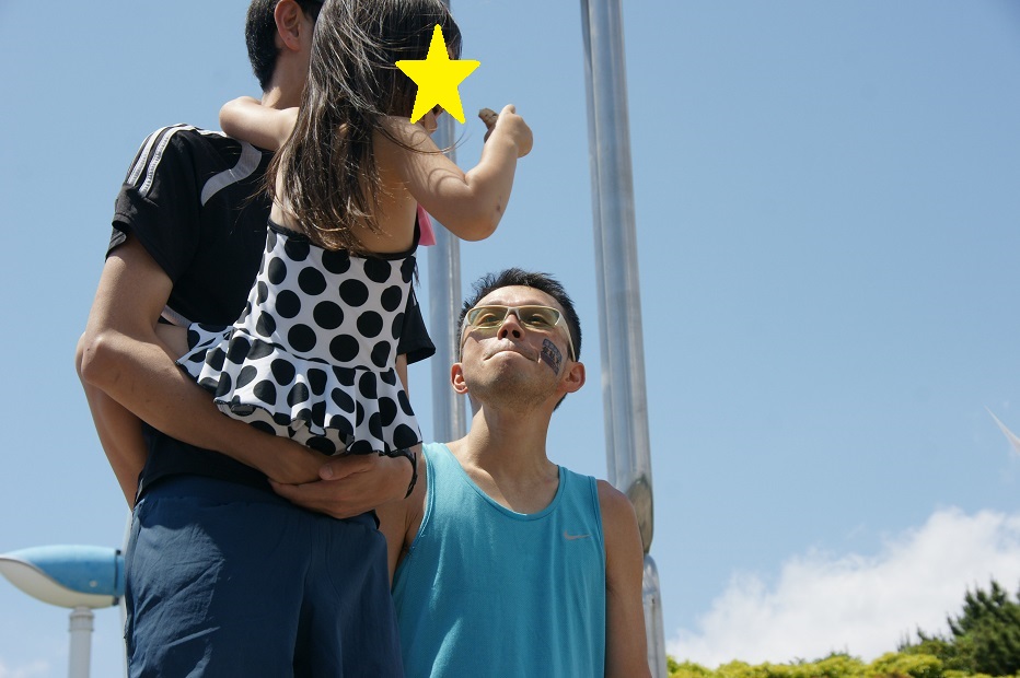 表彰台のUkeさん。優勝者パパのお嬢さんを見上げるその眼差しは、走る時は中毒患者だけど(笑)、2児のお父さんの優しい眼差しが垣間見えた、そんな気がした。