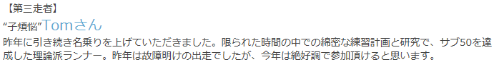 アルスさん→船橋Fさんに続き、僕は第3走者とのこと。襷を渡す相手はKa_Naさん。かしこまりました。