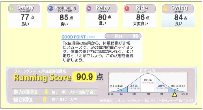 総合評価得点は、90.9。サブスリーランナー40名中4位、総合917名中6位。科学的データに基づけば、僕のフォームは美しい、らしいemoji