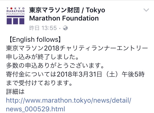 まさか、その不安が的中するとは思いもしなかった。もし、つくばのエントリーが出来なかったとしても、チャリティのエントリーは既に終了しているので、ダブルでショックを受けるところだった・・・。