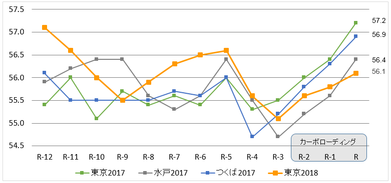今朝の体重55.1kg、つくば前とほぼ同じemoji