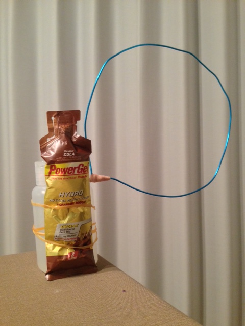 モルテン320を小分けにした100均ボトル2個とジェル。2個はランパンに縫い付けたポケットに入れ、受け取ったら入れ替えるという作戦。これをミスったら痛い。