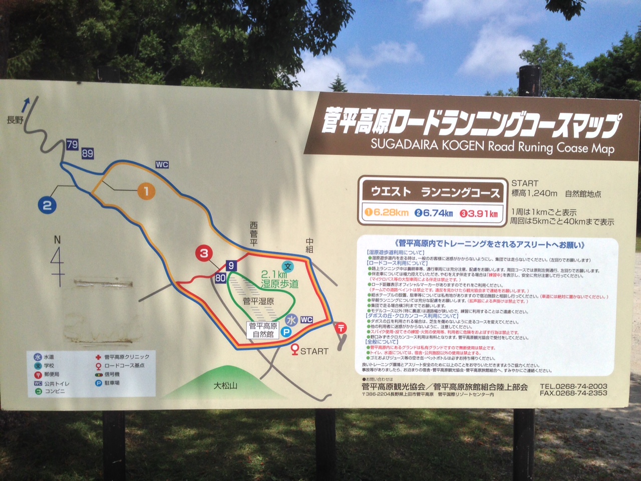 休憩をはさみ、次は菅平湿原周りの2.1kmコースを5周することにした。ロードではないので若干走りにくいが、木々に囲まれ幾分は涼しい。少し速めのジョグでペース5’00設定。10.41km、51分、平均ペース4’54。