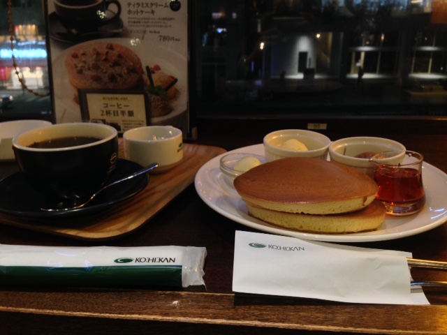 炭火珈琲とホットケーキ2枚のセット。幸せなデザートタイムemoji約800kcalなりemoji