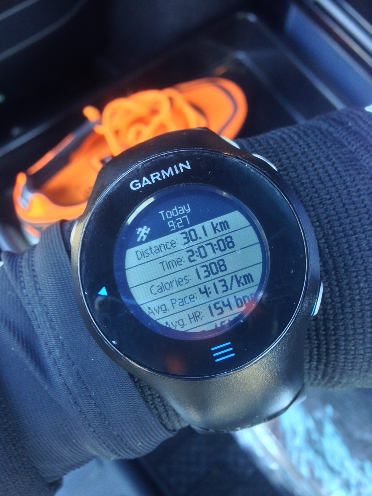 4.5度。風も強く、冷たい北風。東京マラソンの3週間前なので最後の30kmペース走。