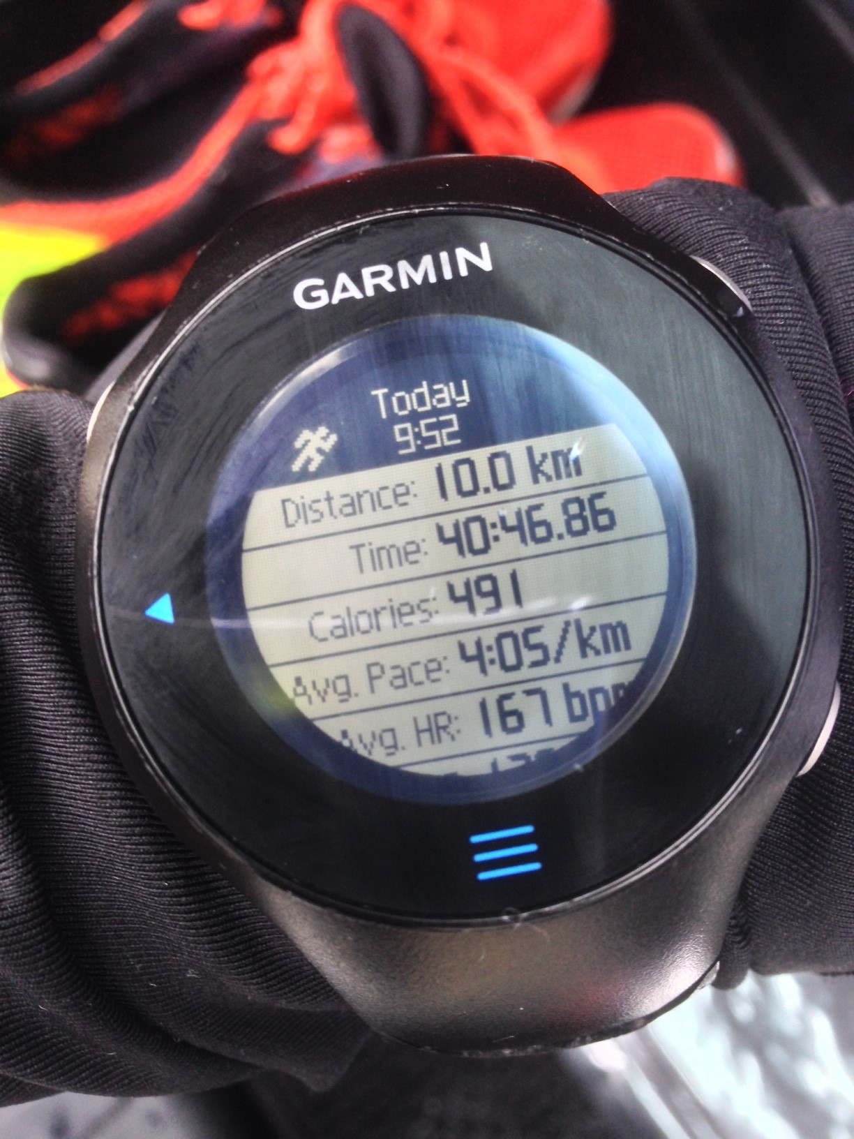 気温7.5度。冷たく強めの風で、体感温度はもう少し低い。小雨もぱらついていた。横浜の1週間前ということで、ちょい速めの10kmペース走。