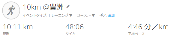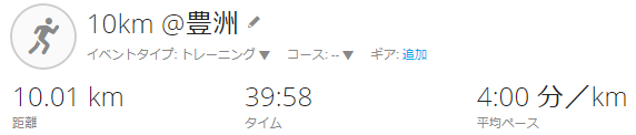 土曜日、東京マラソン後、4週間ぶりにまともなポイント練習。キロヨンで淡々と正確なラップを刻み、10km。
