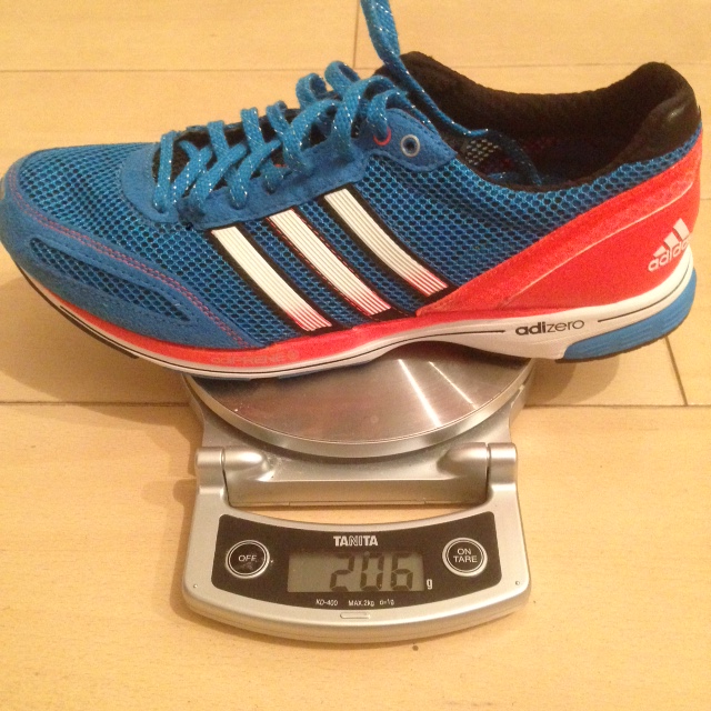 26cmで206g。Japan Boostと同じぐらい。もはやフルのレースで履くことはないが、30kmロング走ではちょうどしっくりくるシューズで、今となっても出番が少なくはない。