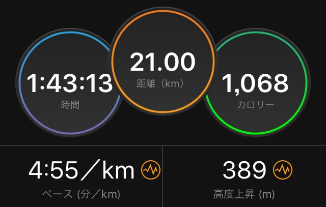 間髪入れずに、Eペースのジョグ。21kmを4'55で。