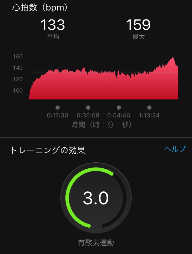 暑い。10分もすると汗がポタポタ。余計なことを考えず、無になり、ひたすら漕ぐ。これぐらいの負荷だときつくはないので、心拍数は130台。