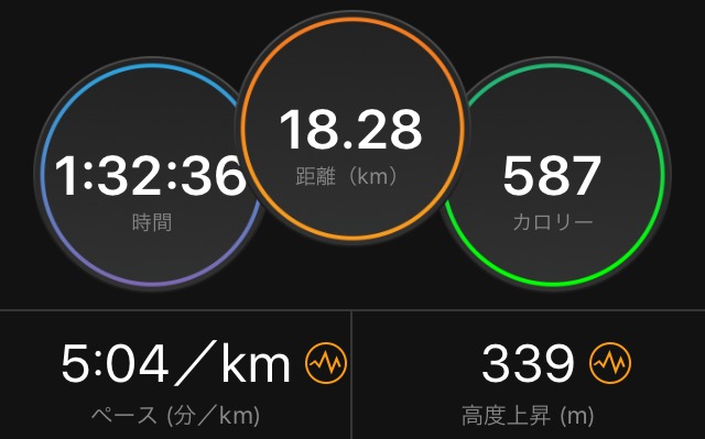 本来であれば、スピード練習をガンガンやりたいところだけど、踵をまだ治療中なので、控えめに。1時間半位を目安にスタート地点に戻ってくるようなペース。