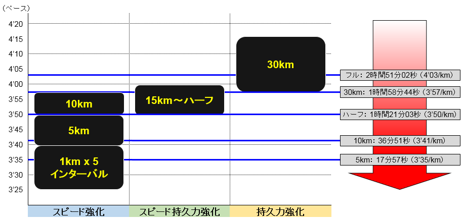 《今シーズン用に微調整したポイント練習の設定ペースは、こんな感じで考えている》