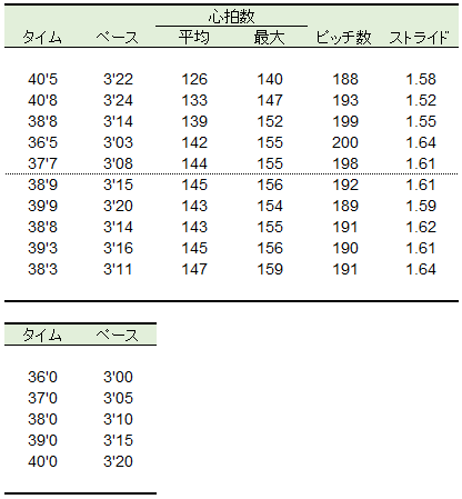 200mを40秒だと1km当たり3'20ペース。さすがに、それじゃちょっと遅い。次は36~38秒、3'00~3'10ペースで10本をチャレンジしたい。