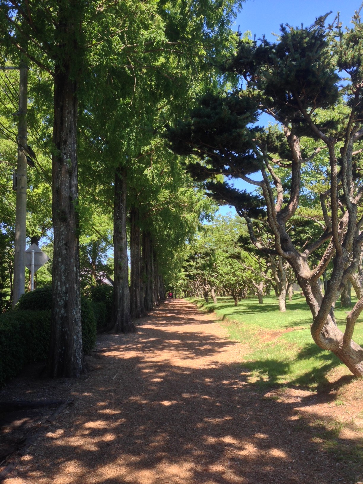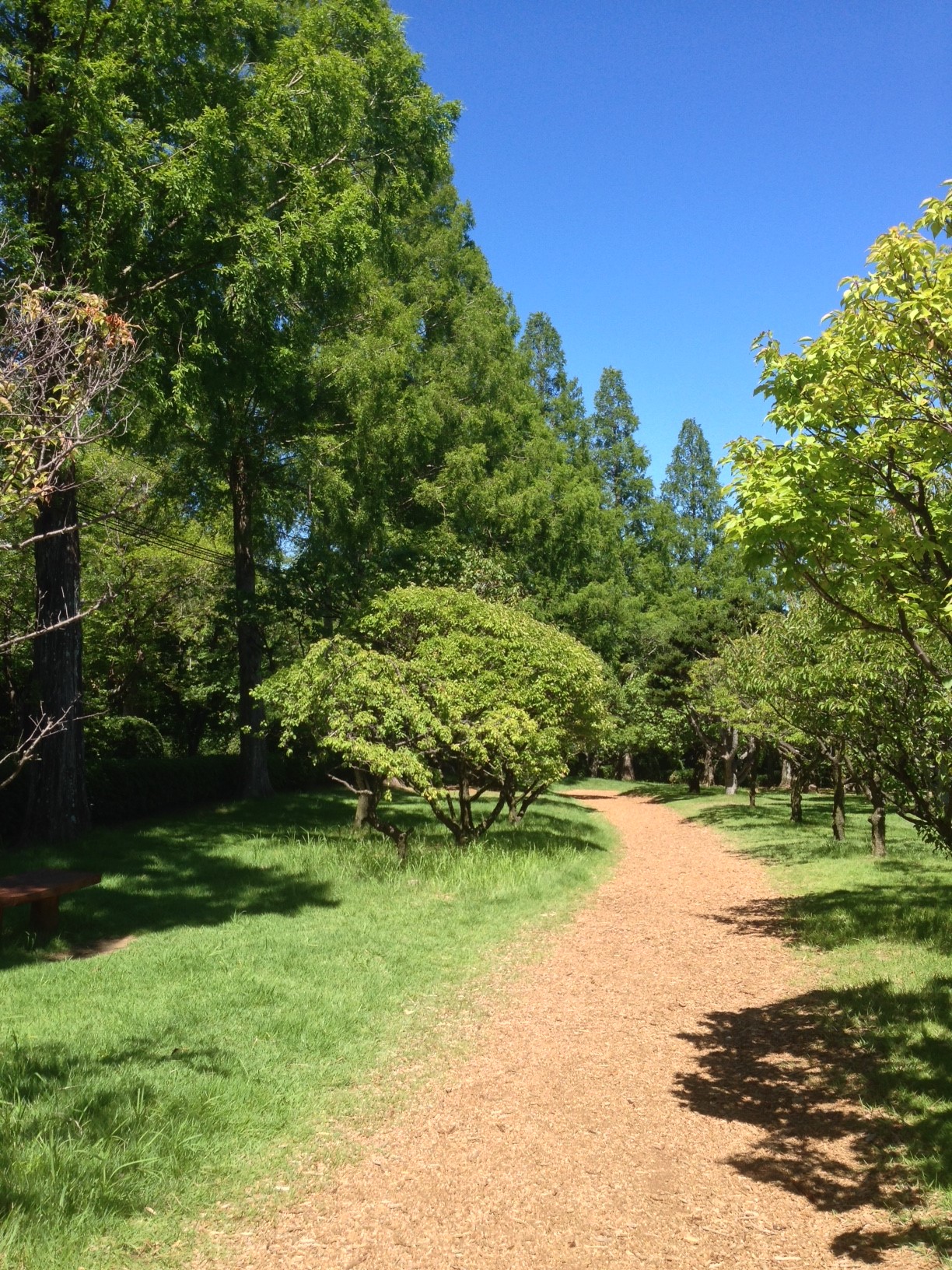 生命の森の敷地内にウッドチップのコースがあり、そこをメインにゆっくりジョグ。写真は前日の昼時に撮ったものだが、トラックとはまた異なる趣で、走っていて本当に気持ちいい。
